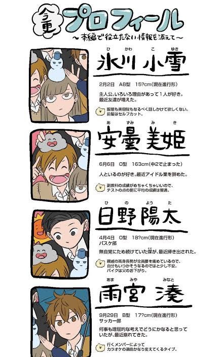人と接するのが苦手で、他人との間を壁で隔ててしまう氷川小雪。高校では誰ともつるまずに1人で過ごしていたけど、なぜかぐいぐい距離を詰めてくる雨宮ミナトと出会い――?孤高の女子・小雪、学年の人気者・美姫、距離ナシ男子・ミナト、のんびり優しいバスケ部員・日野陽太。どこかちょっとこじれた4人の、もどかしい青春の物語!